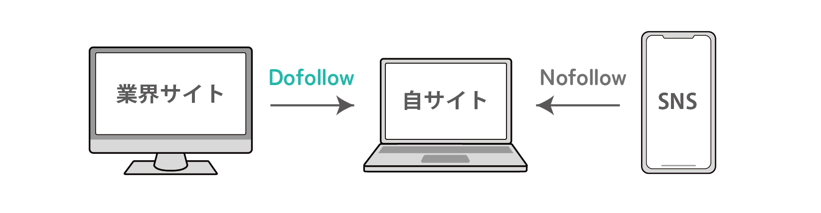 インターネット上のリンクには「Dofollow」と「Nofollow」の2種類があります。Dofollowリンクは、リンク元のサイトからリンク先のサイトへ「評価」を渡すリンクのことです。これは検索エンジンのクローラー(サイトを巡回するロボット)に対して「このリンク先のサイトは信頼できるので、評価を引き継いでください」と伝える役割を持っています。